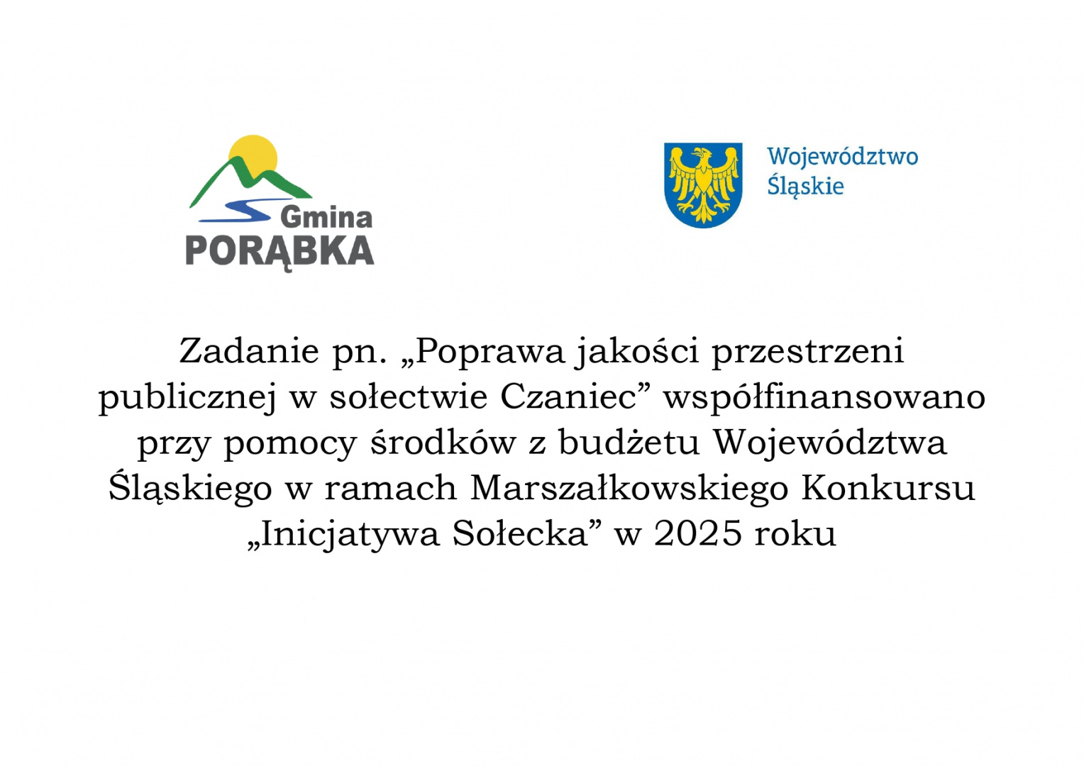 Gmina Porąbka zakończyła realizację projektu pn.: „Poprawa estetyki przestrzeni publicznej w sołectwie Czaniec” współfinansowanego przy pomocy środków z budżetu Województwa Śląskiego w ramach Marszałkowskiego Konkursu „Inicjatywa Sołecka 2025”.