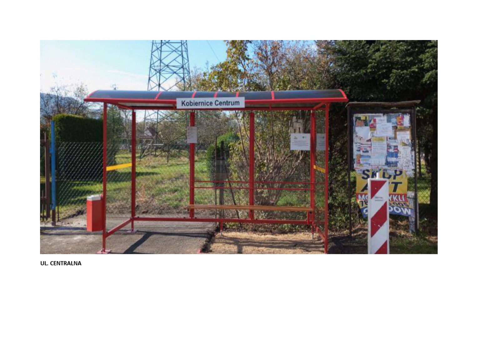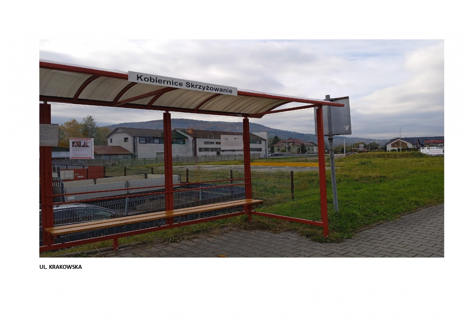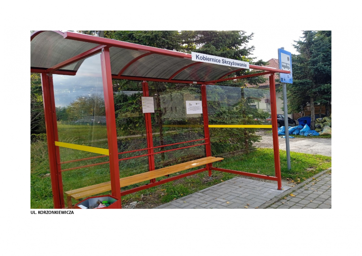 Realizacja zadania miała na celu zagospodarowanie miejsc przestrzeni publicznych w sołectwie Kobiernice, poprzez zakup i montaż 5 nowych wiat przystankowych, które zamieszczone zostały na miejscu zużytych, bądź zdewastowanych wiat. Nowe miejsca przystankowe znajdują się przy ulicach: Krakowskiej, Żywieckiej, Korzonkiewicza i Centralnej.