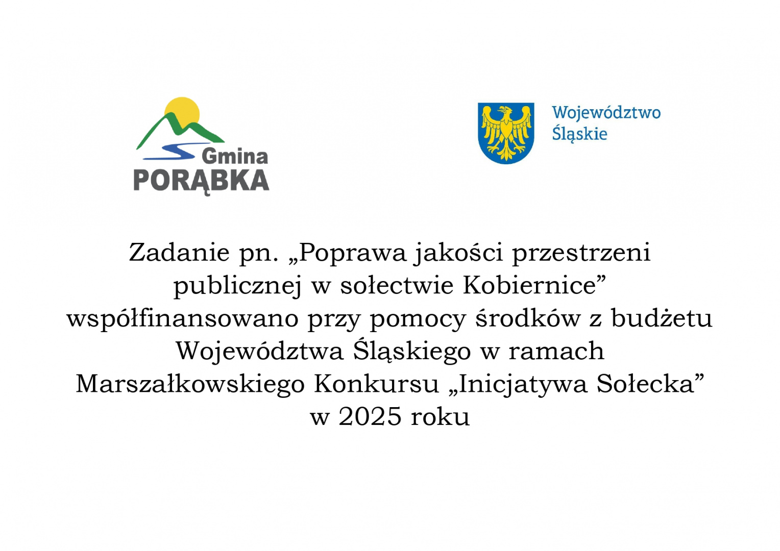 Gmina Porąbka zakończyła realizację projektu pn.: „Poprawa estetyki przestrzeni publicznej w sołectwie Kobiernice” współfinansowanego przy pomocy środków z budżetu Województwa Śląskiego w ramach Marszałkowskiego Konkursu „Inicjatywa Sołecka 2025”.